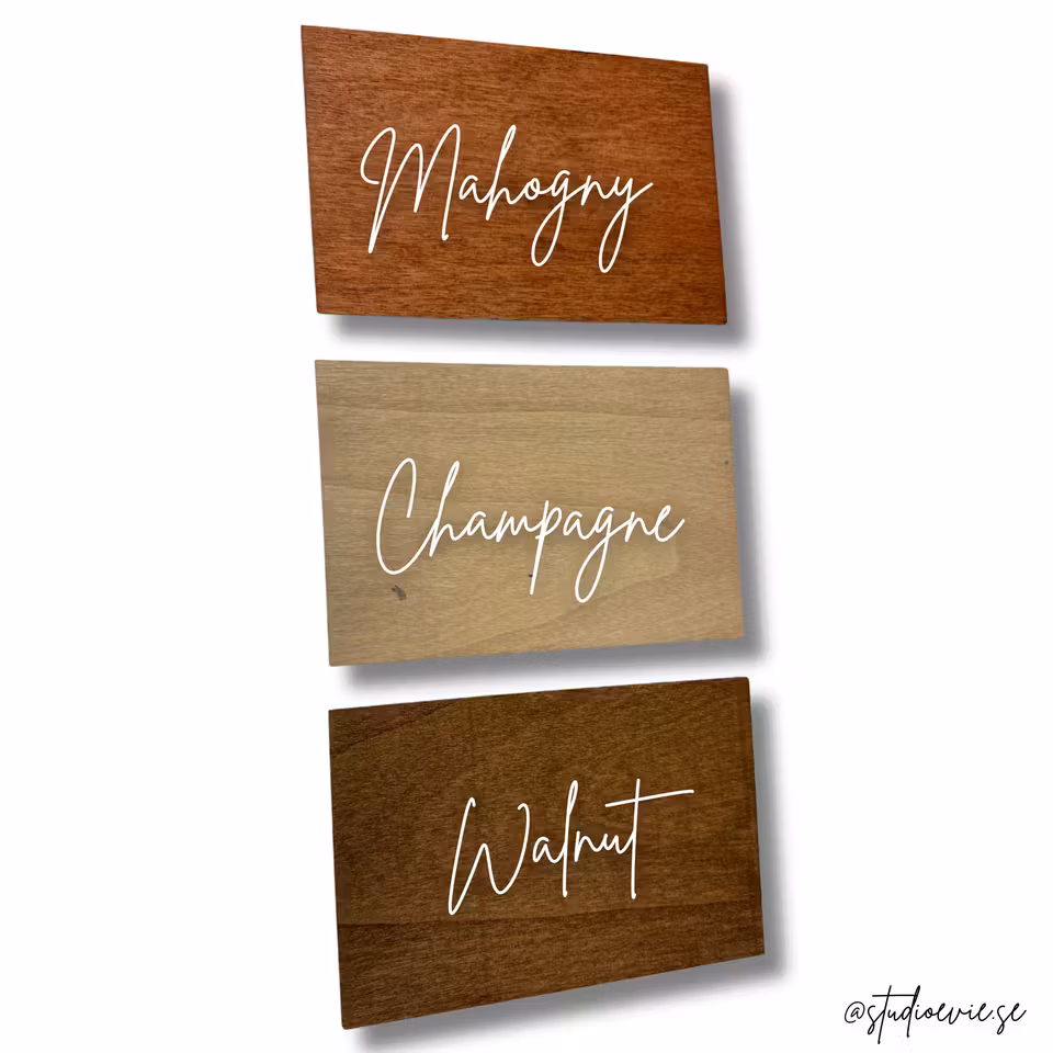 Handtillverkad i valfri kombination av trä och akryl blir er personliga bröllopsgästbok ett helt unikt föremål, skapat just för er.