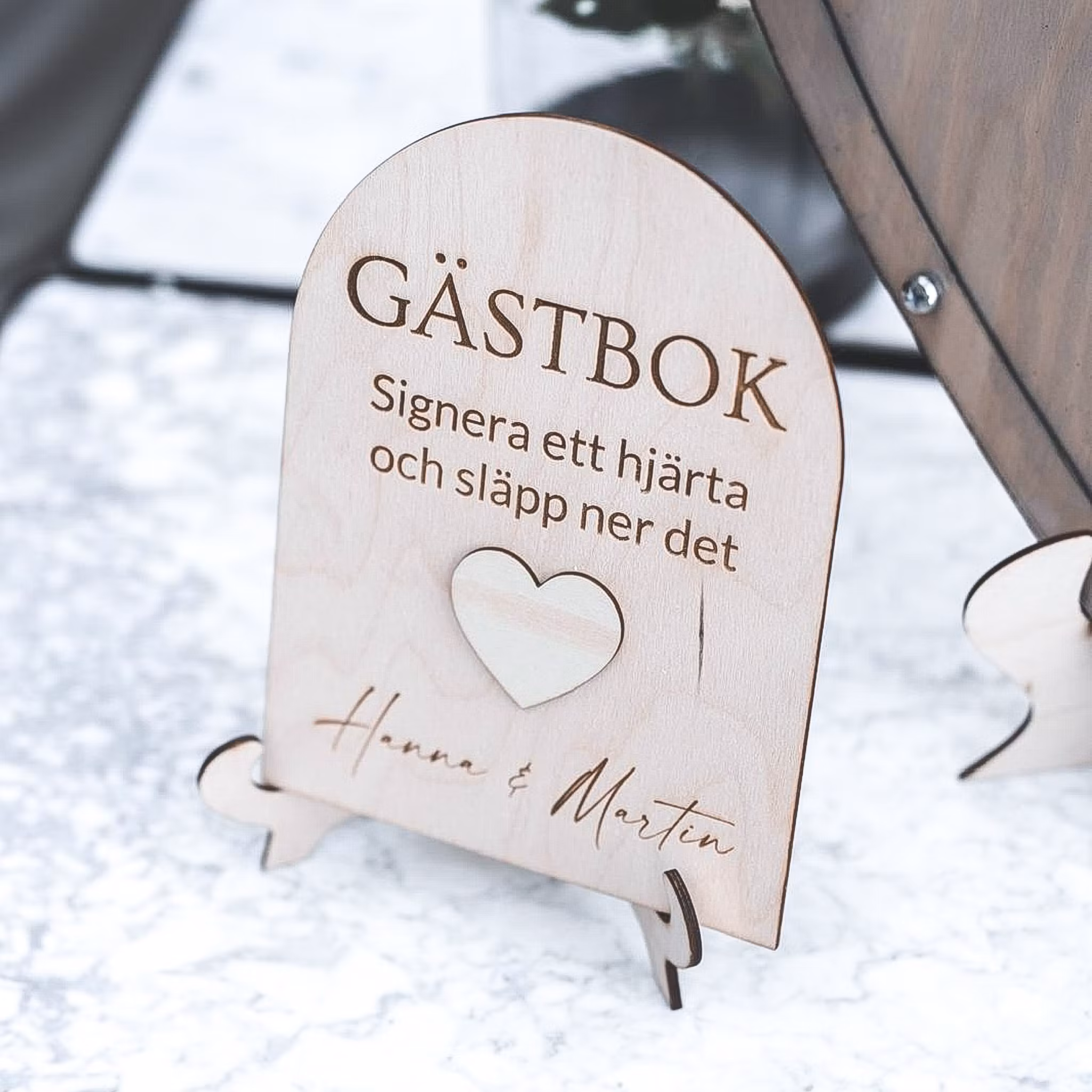 🤍 En matchande gästboksskylt ingår för att guida gästerna