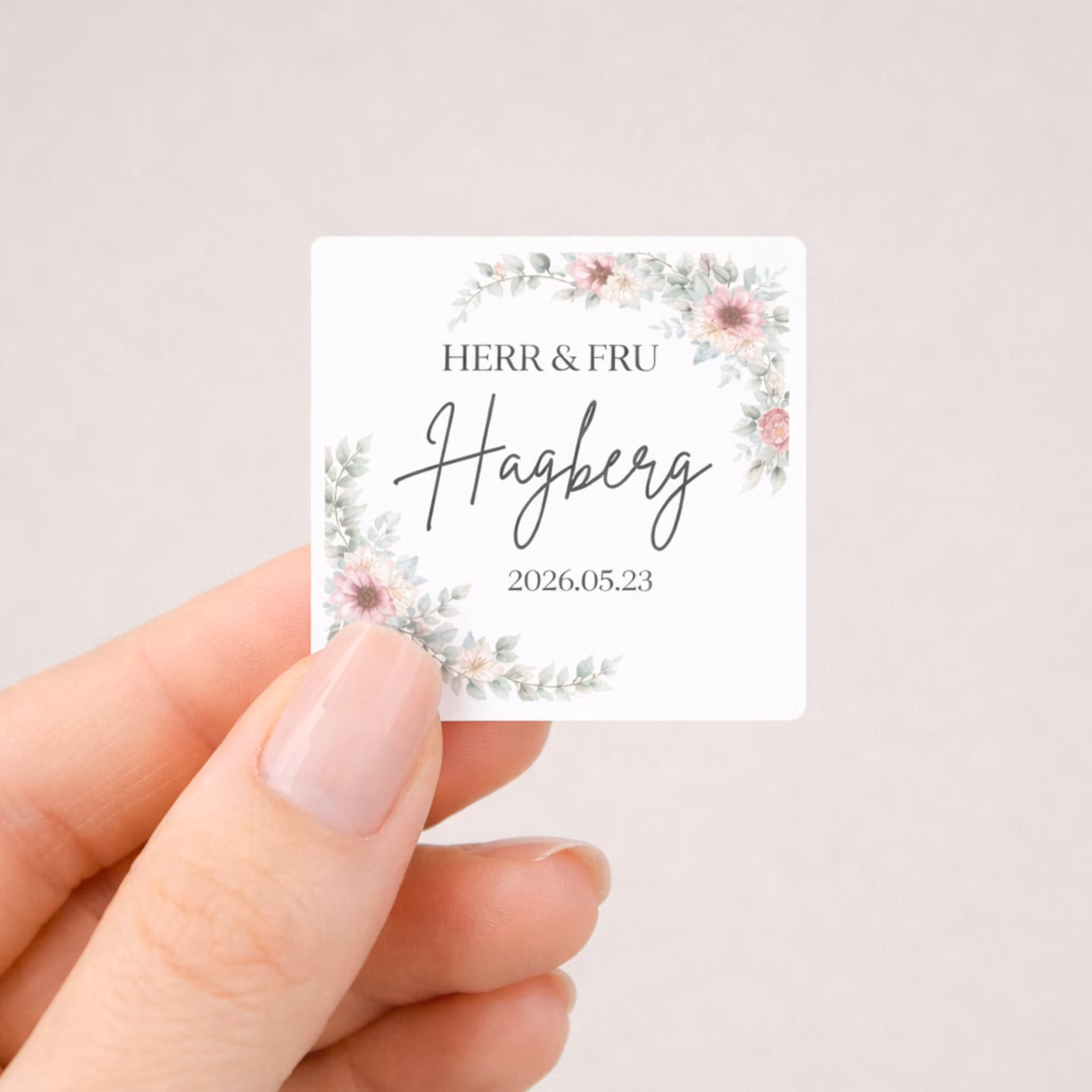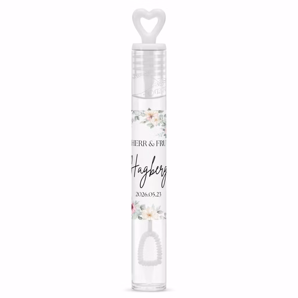 Skapa en romantisk och enhetlig detalj till ert bröllop med våra personliga klistermärken till såpbubblor. Perfekta att fästa på egna såpbubblebehållare och dela ut till gästerna inför vigselutgången eller brudskålen.