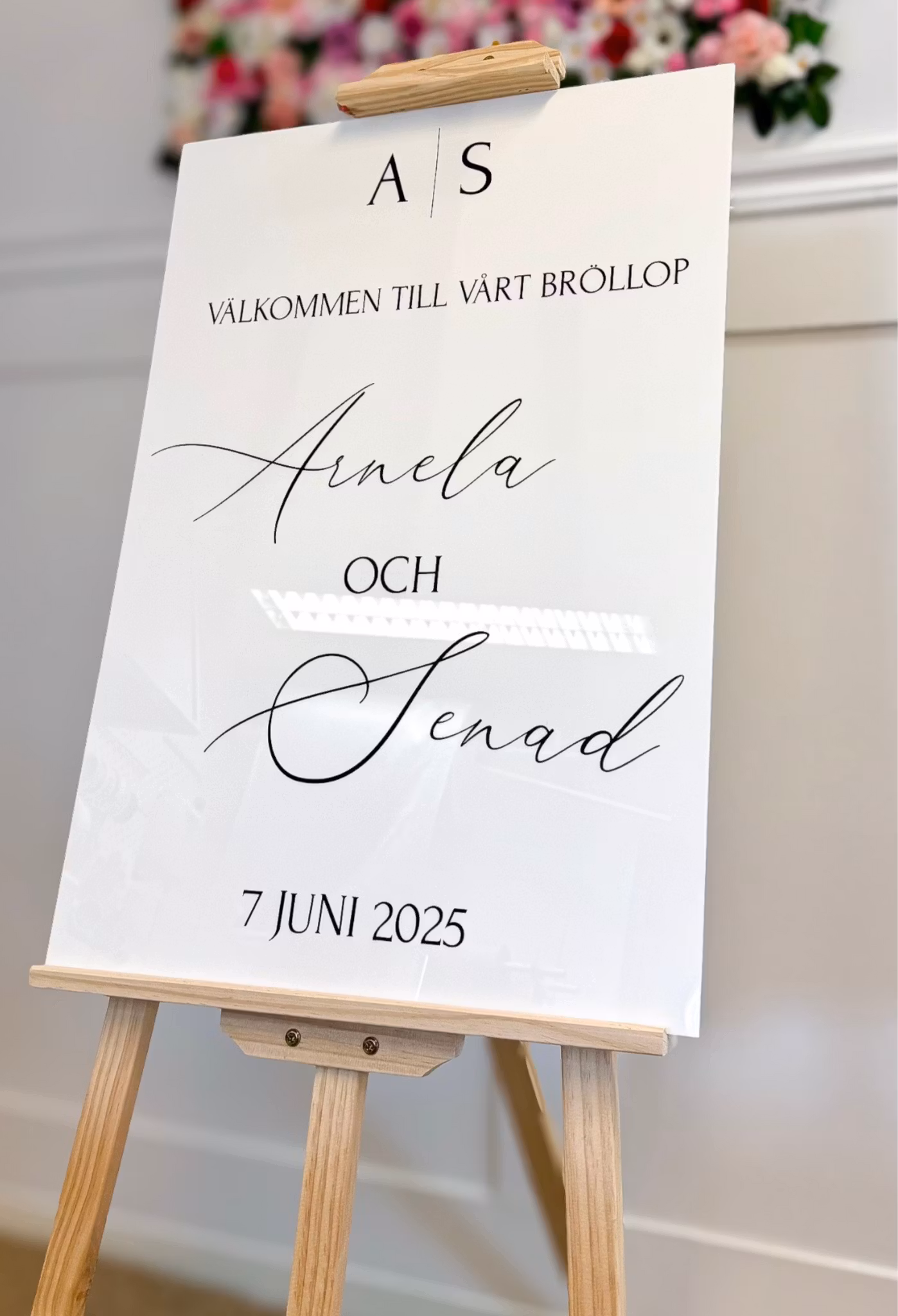 Välkomna era gäster med en personlig bröllopsskylt i akryl 🤍